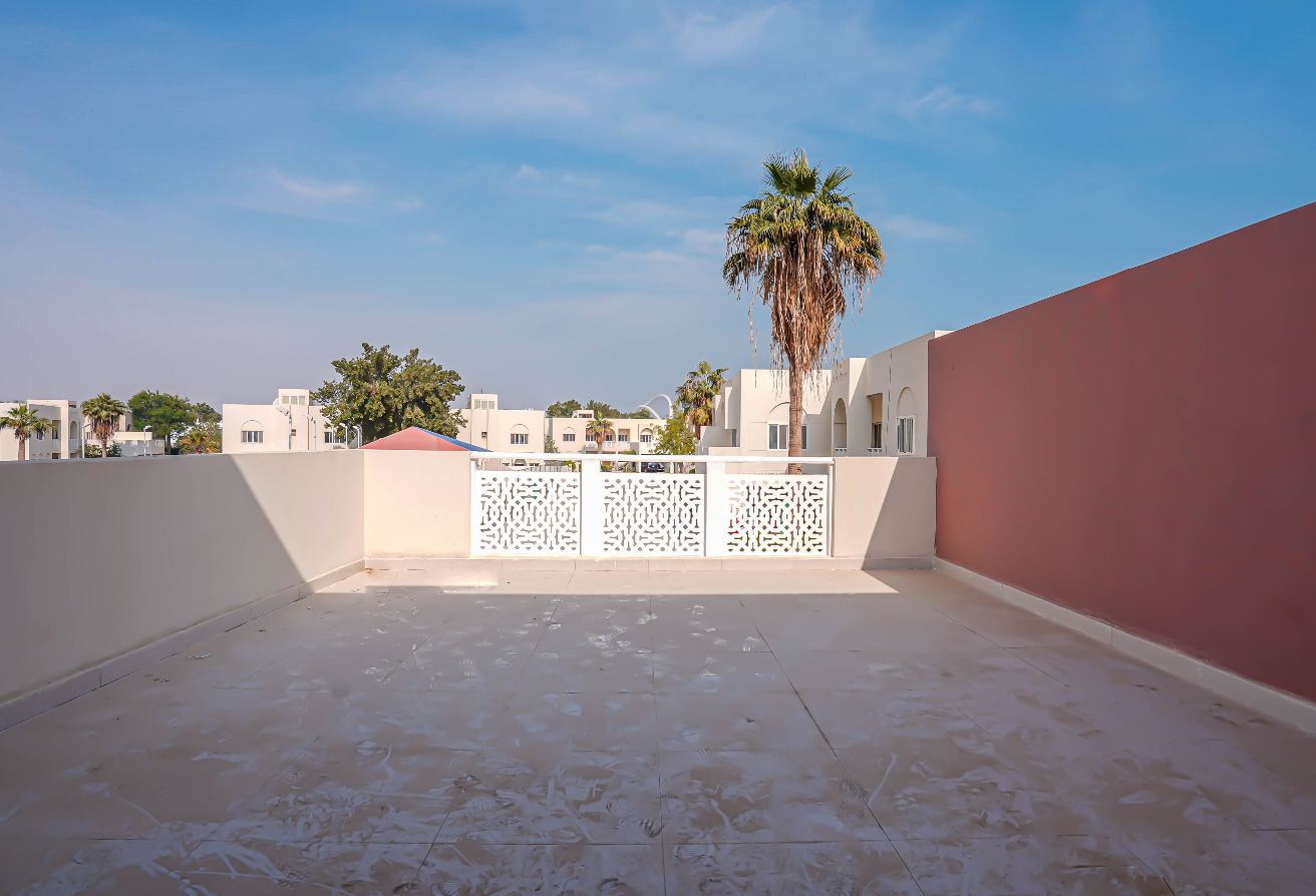 This semi-furnished villa features 4 large bedrooms plus a maid’s room, providing ample space for every member of the household. With 5 well-appointed bathrooms, convenience and comfort are ensured for both residents and guests. The villa also includes a balcony, allowing you to enjoy natural light and a relaxing view of the surrounding villas within the compound.