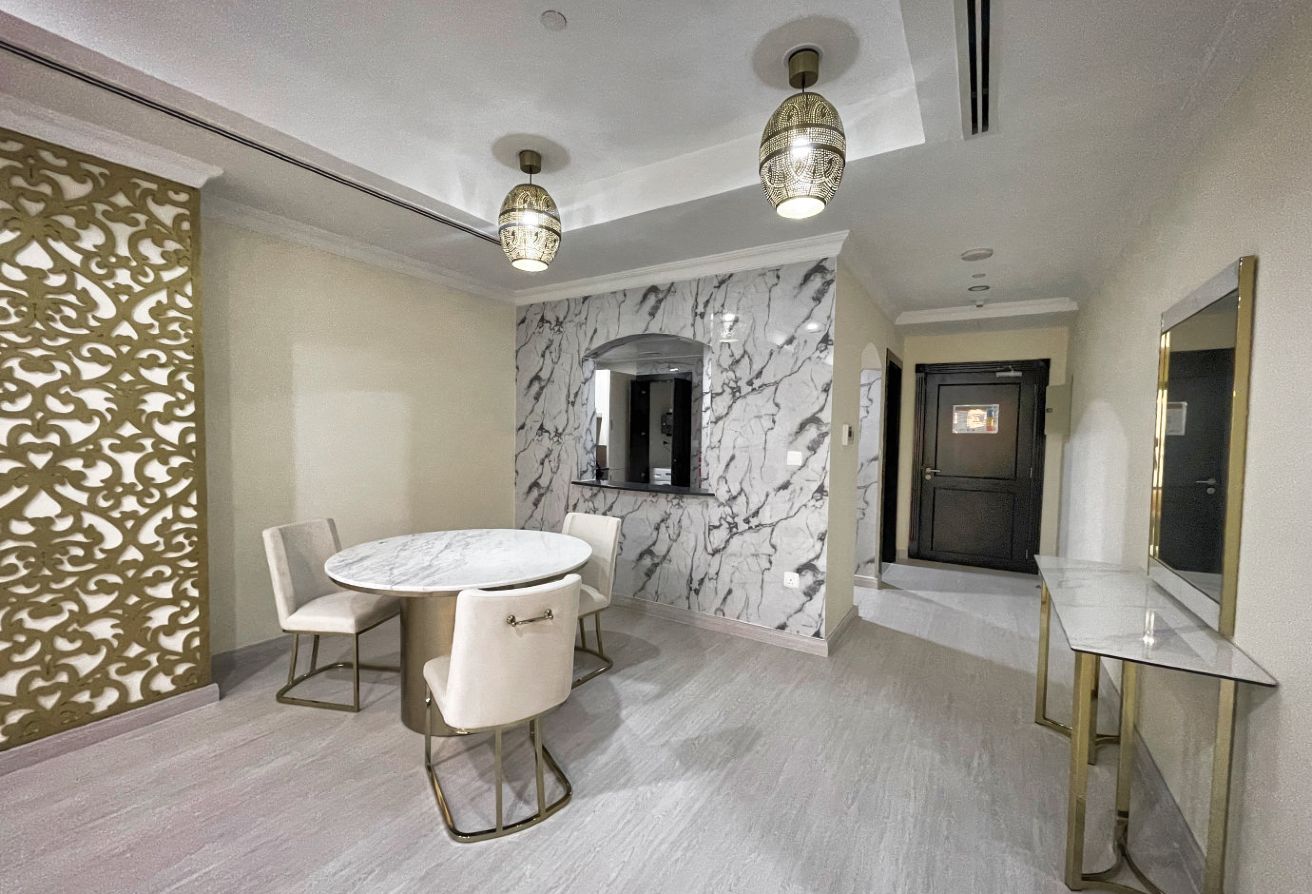 This stunning 1 bedroom apartment offers a perfect blend of modern elegance and comfort, situated in one of Dohas most prestigious residential areas. As you step inside, be greeted by a stylishly furnished living space bathed in natural light, courtesy of large windows that offer breathtaking views of the azure sea stretching out before you. Relax in the cozy ambiance of the living room, complete with contemporary furniture arrangements designed for both relaxation and entertainment.