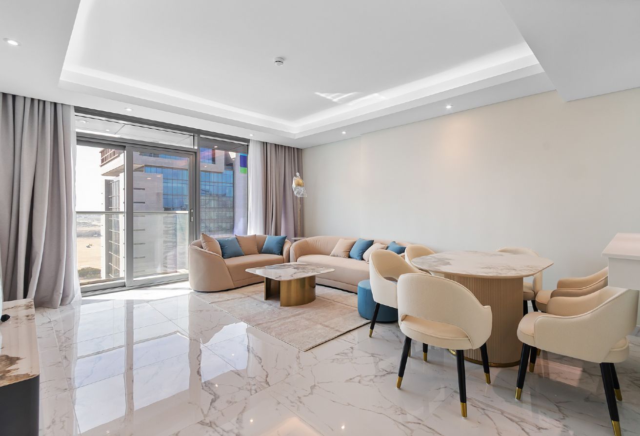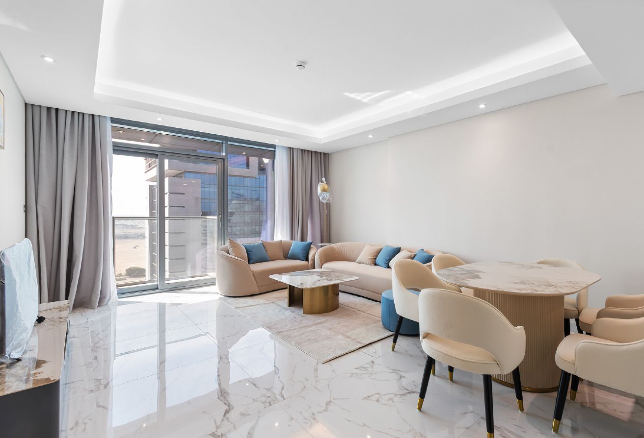 This spacious 1-bedroom apartment features a thoughtfully designed 70 sqm living area, perfect for comfortable and modern living. The unit includes two bathrooms, offering added convenience for both residents and guests. A private balcony enhances the space with natural light and fresh air, creating a bright and welcoming atmosphere.