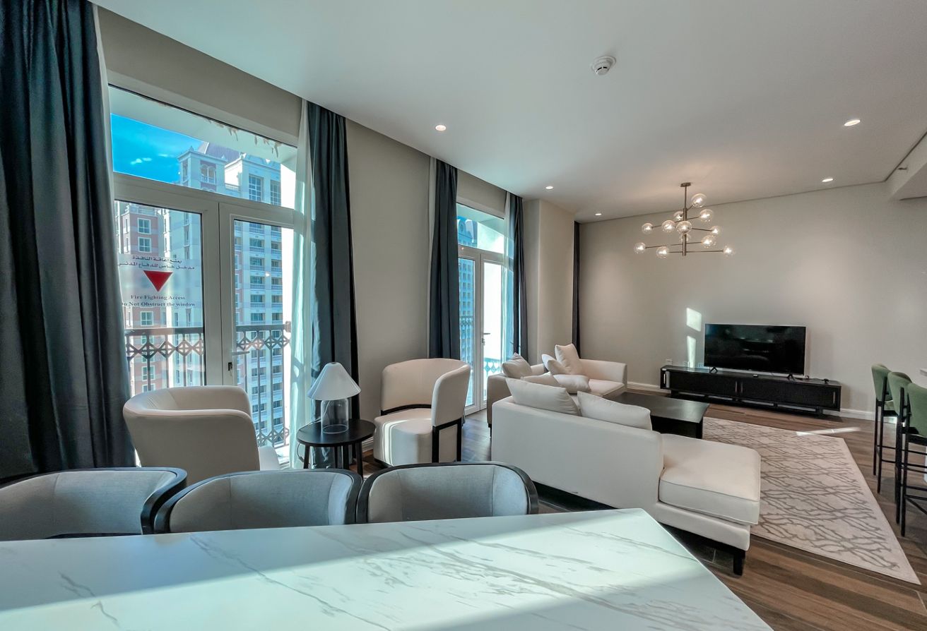 Situated in the heart of The Pearl, the property offers easy access to retail outlets, dining venues, and entertainment options, making it one of the most desirable residential locations in Qatar.