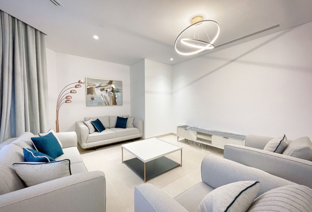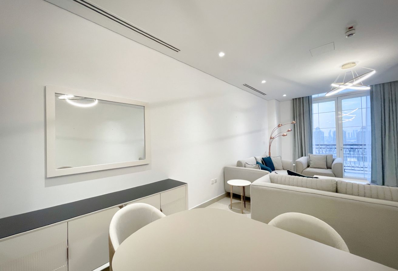 Step into a world of elegance and luxury with this 3-bedroom penthouse located in the prestigious Floresta Garden, The Pearl Island. This spacious home offers an exquisite lifestyle with breathtaking panoramic views of the Arabian Gulf from both the living areas and bedrooms, as seen in the attached photos. The penthouse comes fully furnished with contemporary decor, enhancing the bright and airy atmosphere that flows throughout the space. High ceilings and large windows ensure abundant natural light, providing a serene environment to relax and unwind.