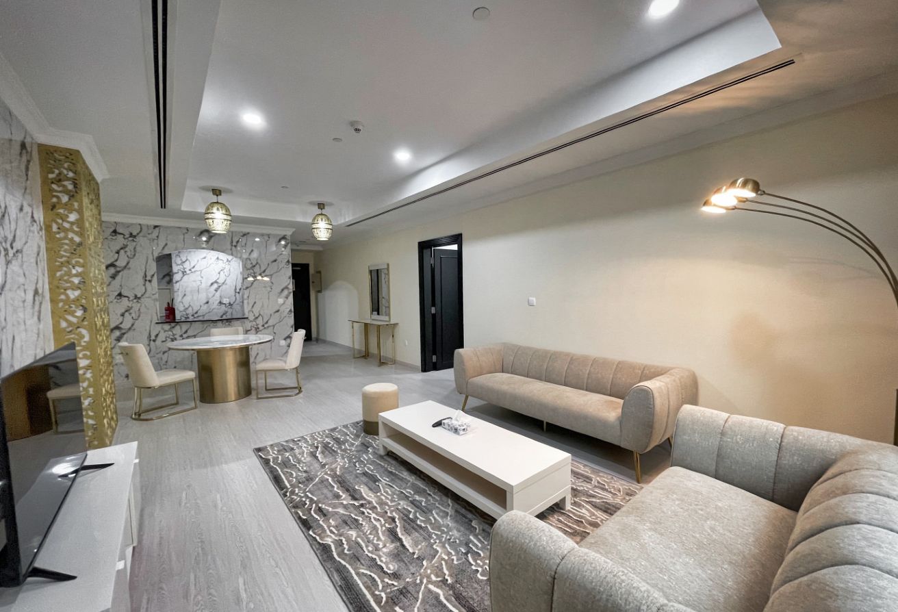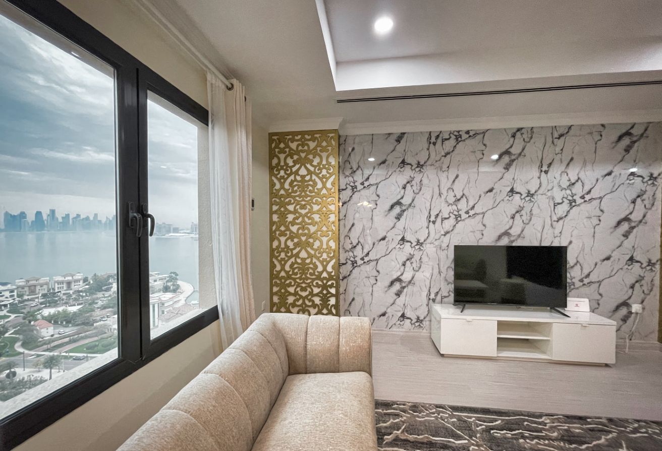 This stunning 1 bedroom apartment offers a perfect blend of modern elegance and comfort, situated in one of Dohas most prestigious residential areas. As you step inside, be greeted by a stylishly furnished living space bathed in natural light, courtesy of large windows that offer breathtaking views of the azure sea stretching out before you. Relax in the cozy ambiance of the living room, complete with contemporary furniture arrangements designed for both relaxation and entertainment.