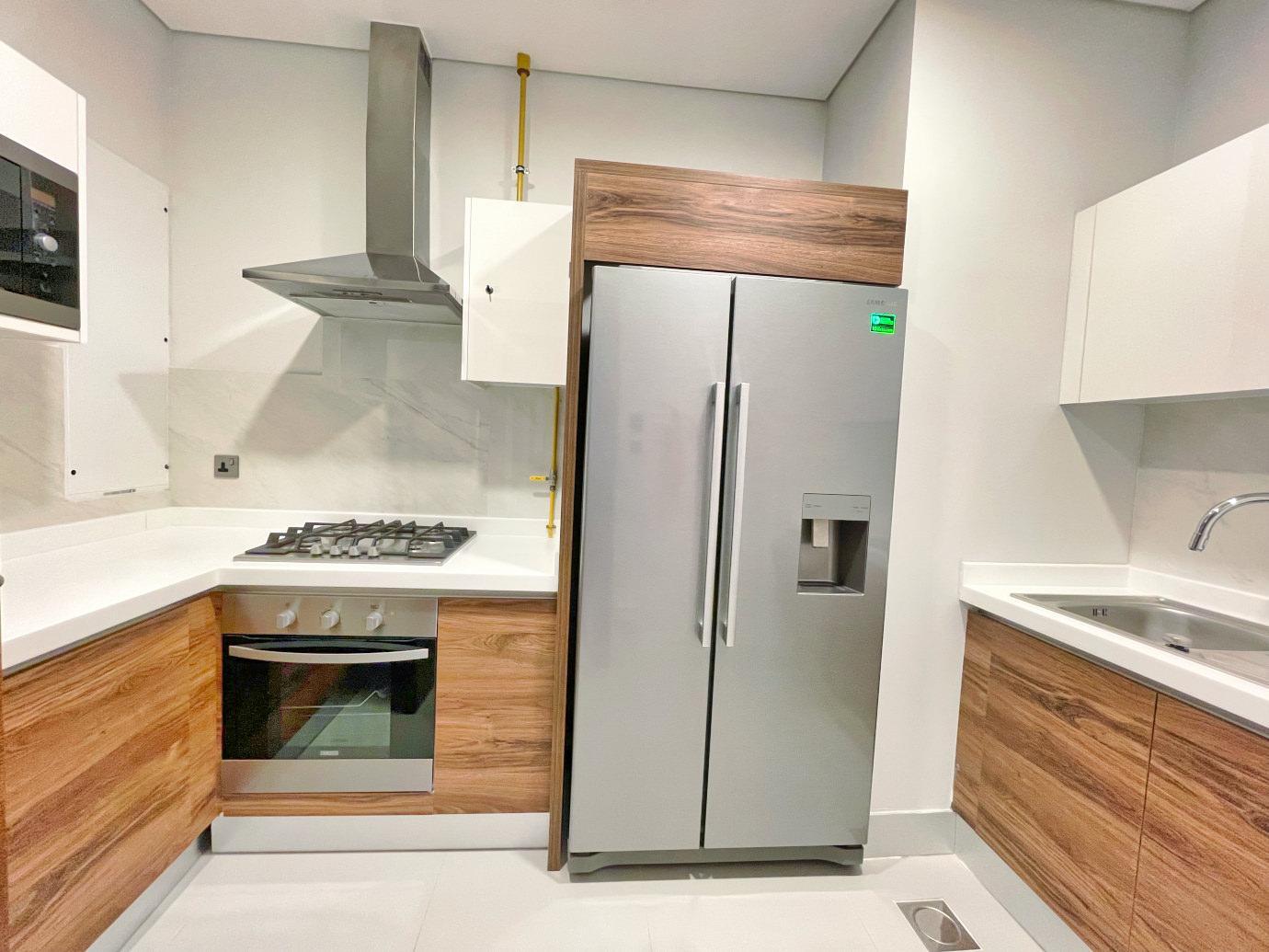 Each of the two bedrooms is a private retreat, featuring ensuite bathrooms that combine style and functionality. The apartment also includes a guest toilet, ensuring convenience for both residents and visitors. The fully equipped kitchen boasts modern appliances and sleek finishes, making it a joy to prepare meals and entertain guests.