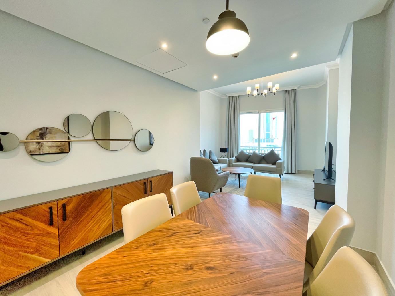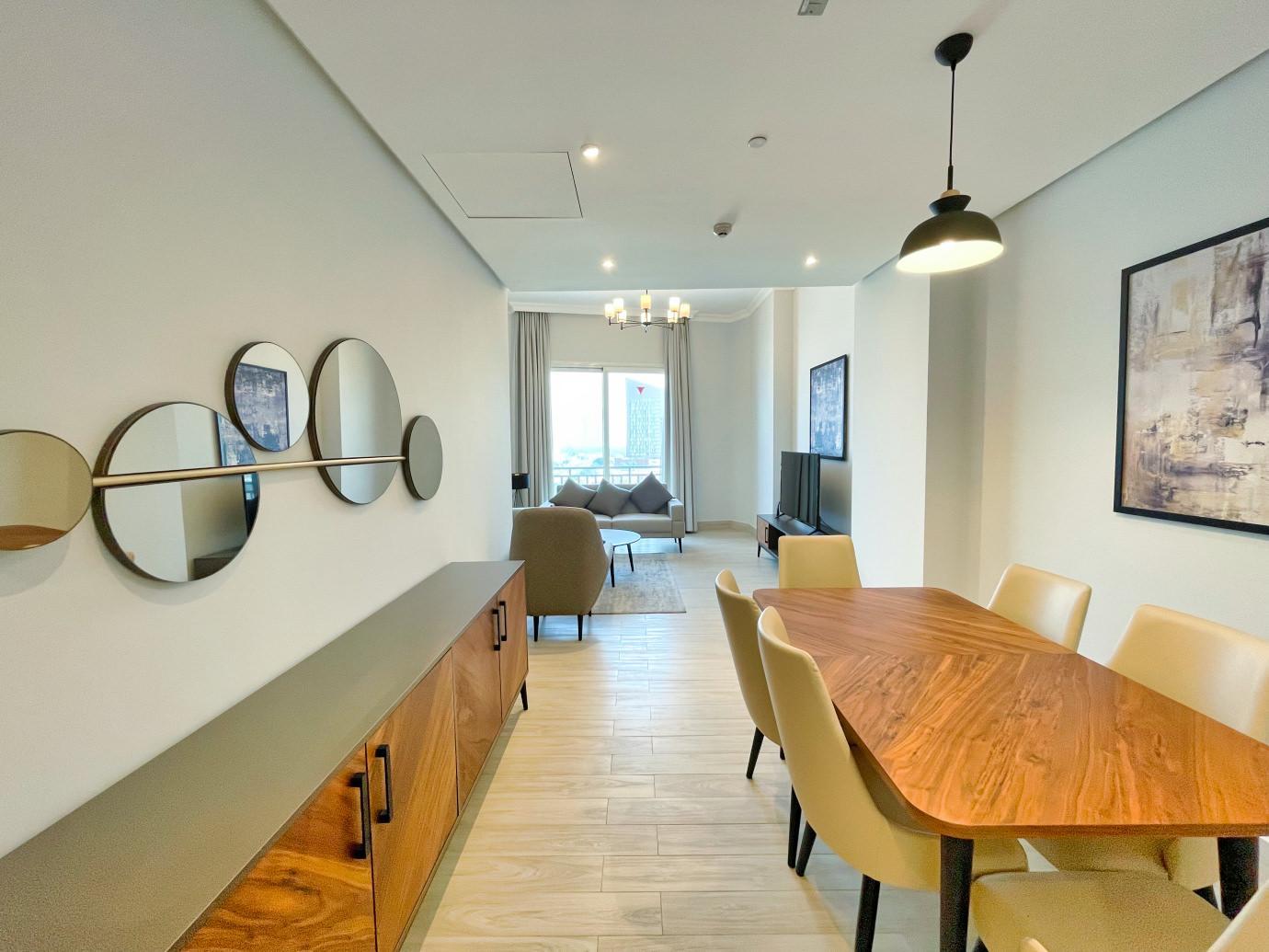Experience the luxury of modern living in this beautifully furnished two-bedroom apartment in Lusail Marina. The apartment is meticulously designed, offering a clean and elegant ambiance perfect for those seeking a serene and sophisticated lifestyle. The spacious living area seamlessly connects to a balcony that provides stunning city views, making it an ideal spot to relax and unwind.