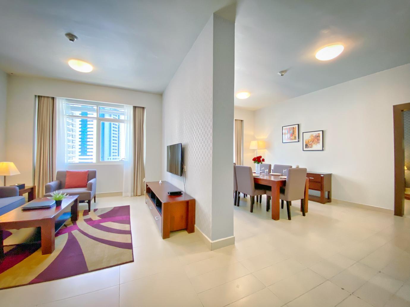 Welcome to your fully furnished two-bedroom serviced apartment in the vibrant district of West Bay! Thoughtfully designed for comfort and convenience, this modern apartment offers a hassle-free living experience. Whether youre a busy professional or seeking temporary accommodation, this property provides the perfect balance of luxury and practicality.