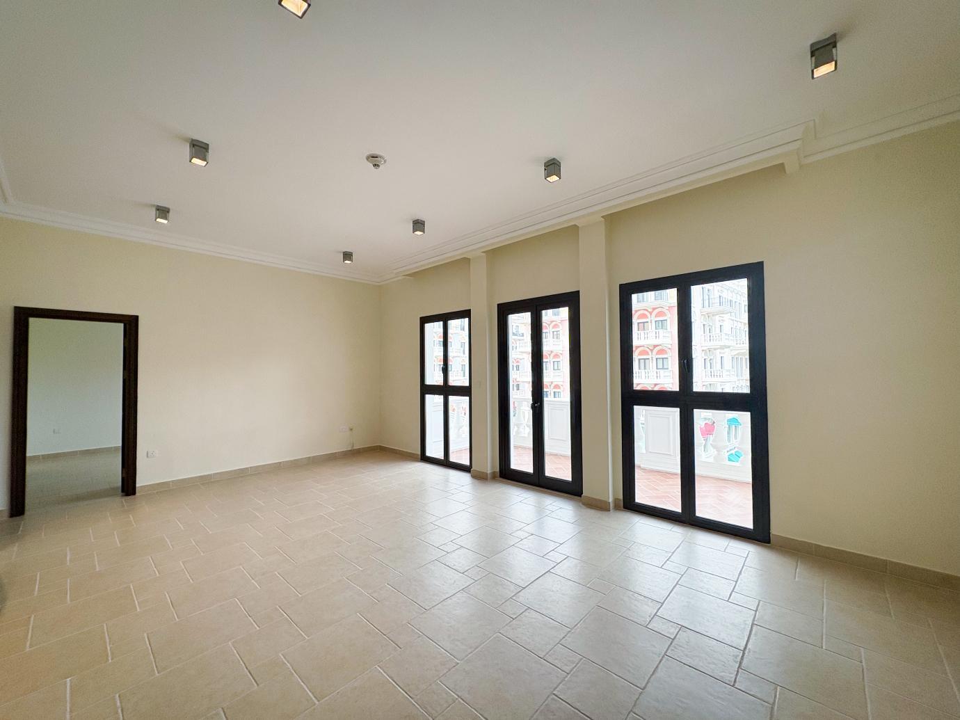 This stylish 2-bedroom apartment is located in the sought-after Qanat Quartier, offering a serene living experience with a direct canal view. Spanning across 116 square meters, the apartment is semi-furnished, providing a comfortable balance of convenience and style. It features 2 spacious bedrooms, each with ample closet space, and 3 well-appointed bathrooms.