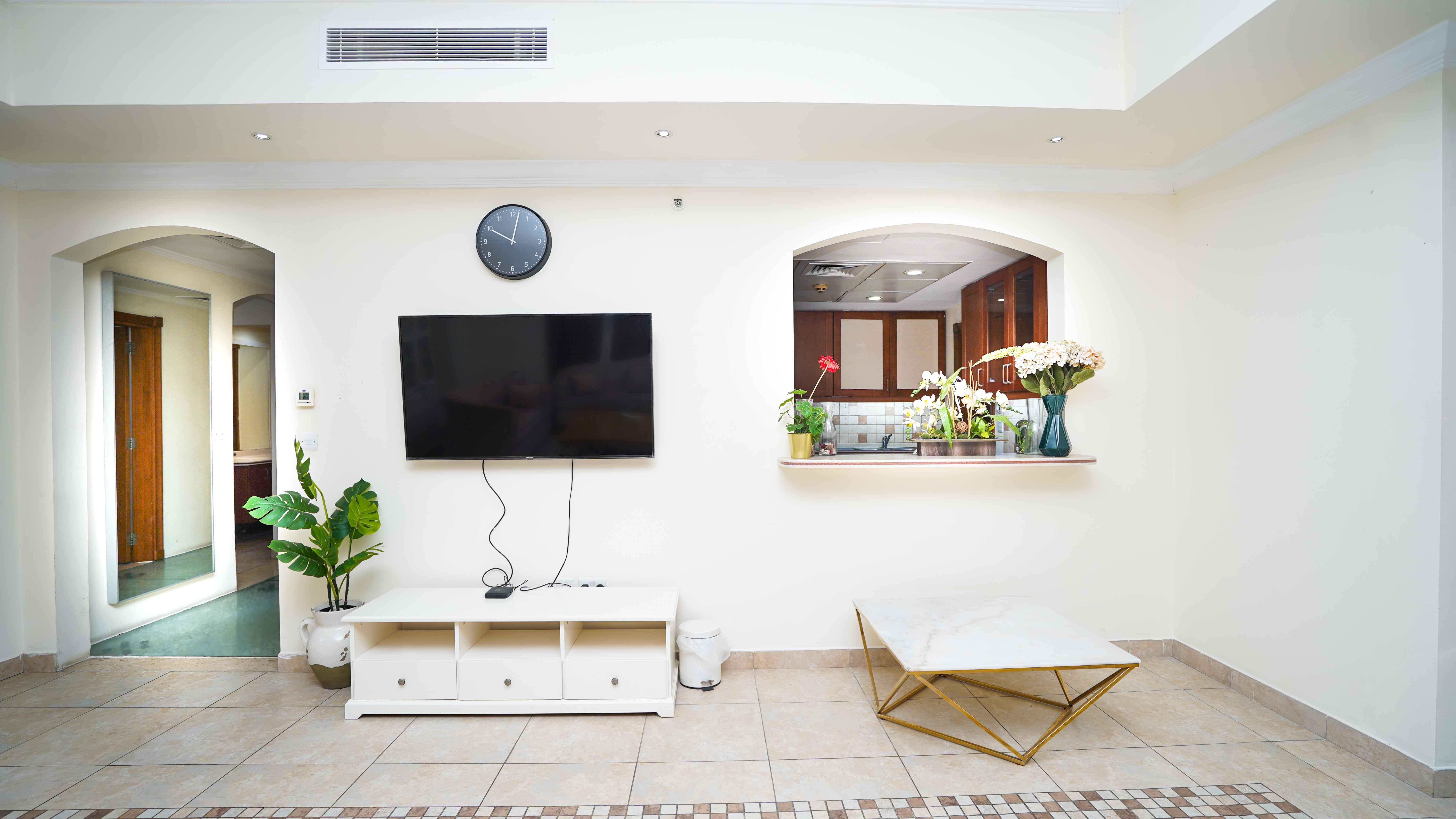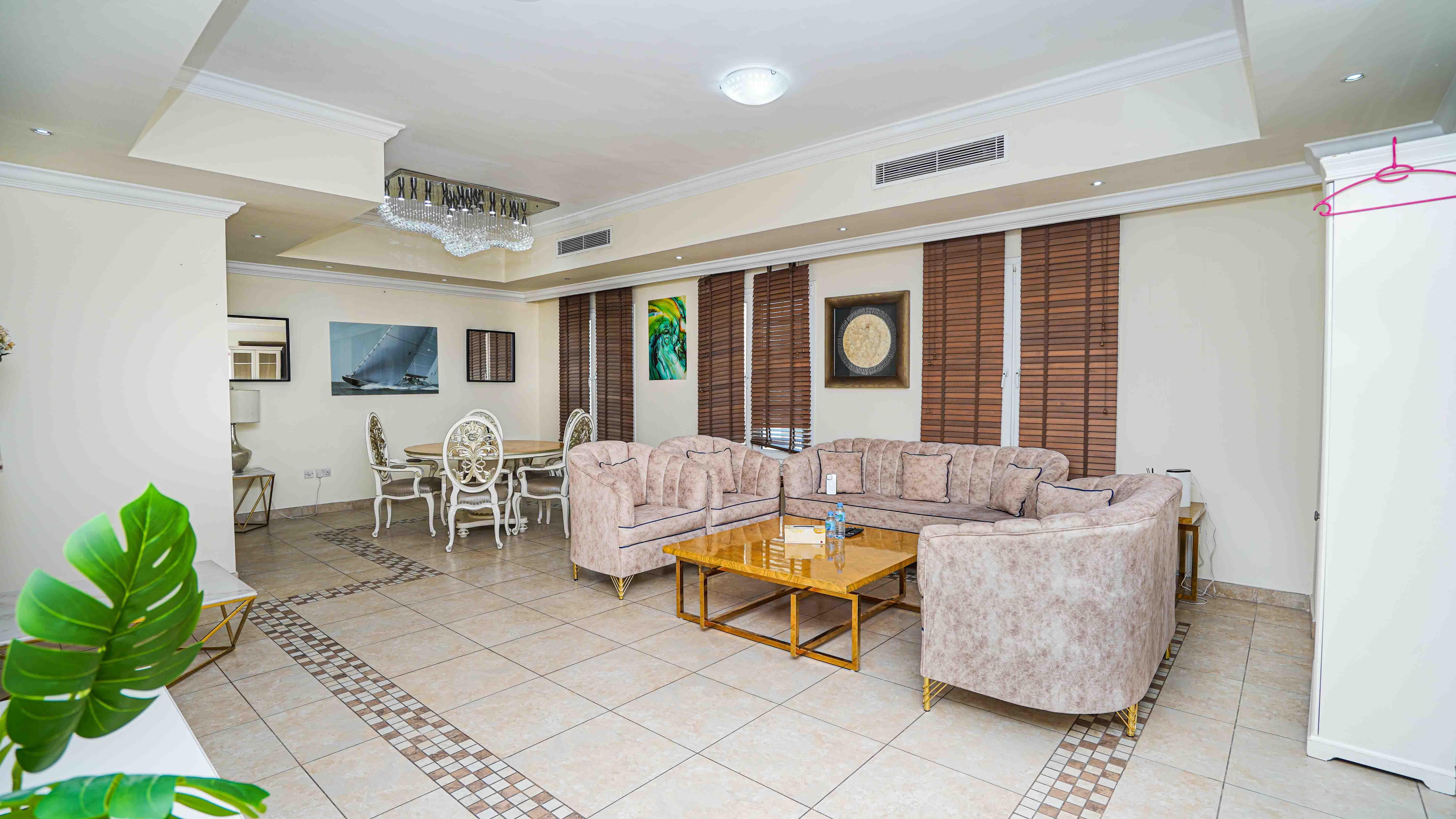 Central location in Porto Arabia, close to shops, cafés, and the marina promenade