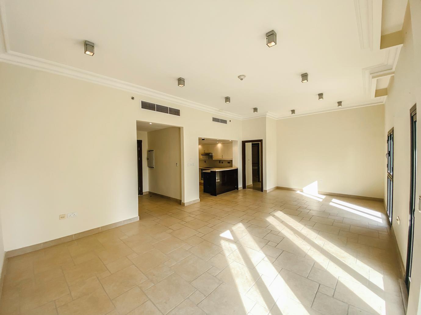 Semi-furnished Venetian-inspired 3-bedroom apartment located in Qanat Quartier, The Pearl.