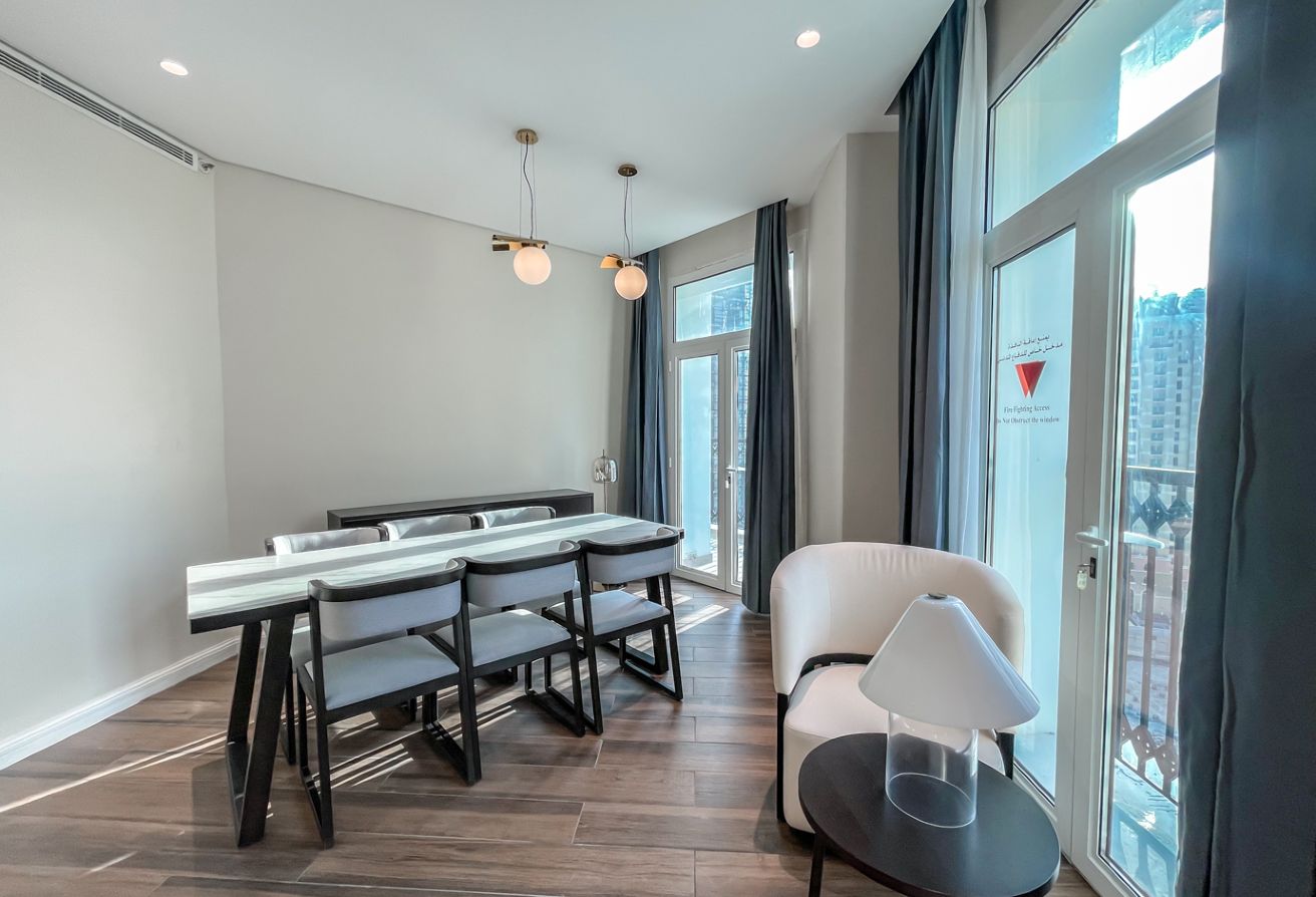 The apartment features a spacious and contemporary living area, finished with high-quality furnishings and elegant fittings throughout. The inclusion of a maid’s room adds valuable flexibility for household staff or additional storage.