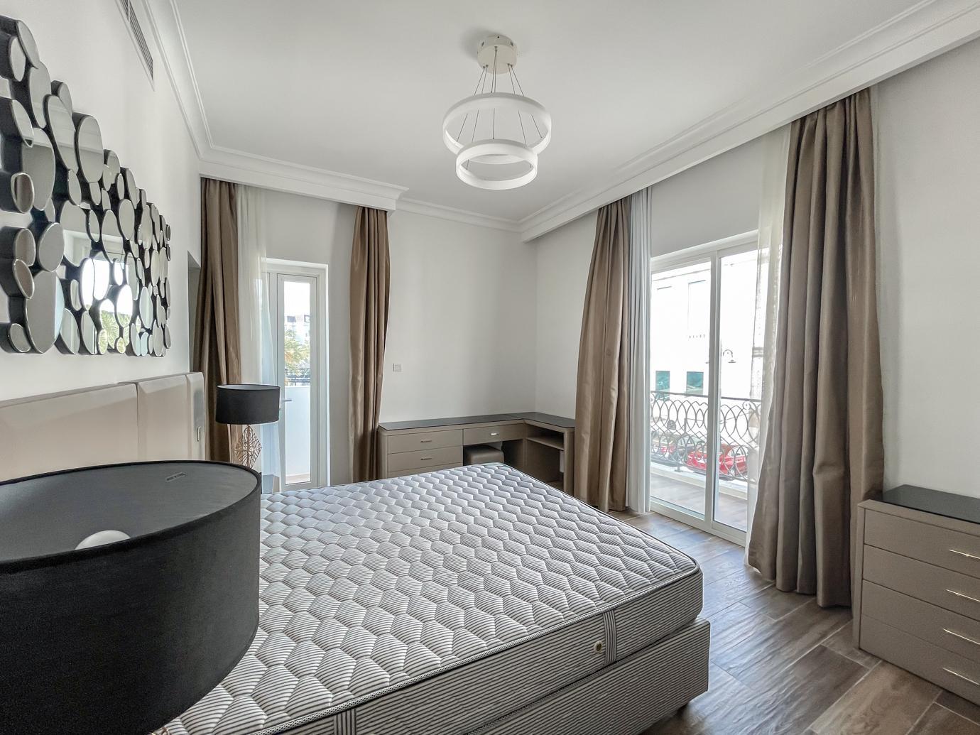 The fully equipped kitchen is fitted with top-of-the-line appliances, ensuring that you have everything you need to prepare your favorite meals. The four bedrooms are tastefully furnished with plush beds, cozy linens, and ample storage space. The maid's bedroom is also furnished with a comfortable bed, making it the perfect space for a helper or an additional guest.