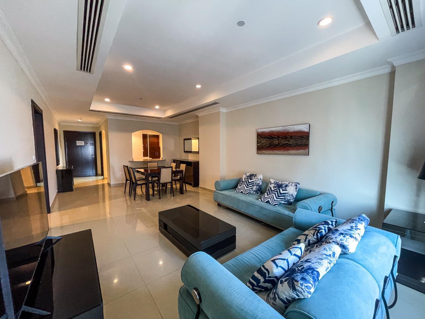 Step into the epitome of luxurious living with this affordable, fully furnished 1-bedroom apartment located in the heart of Porto Arabia, The Pearl Island Qatar. Perfect for singles or couples, this apartment offers a blend of comfort, style, and convenience. Furnished with contemporary décor and fitted with all modern appliances, the living space is designed for both relaxation and entertainment.
