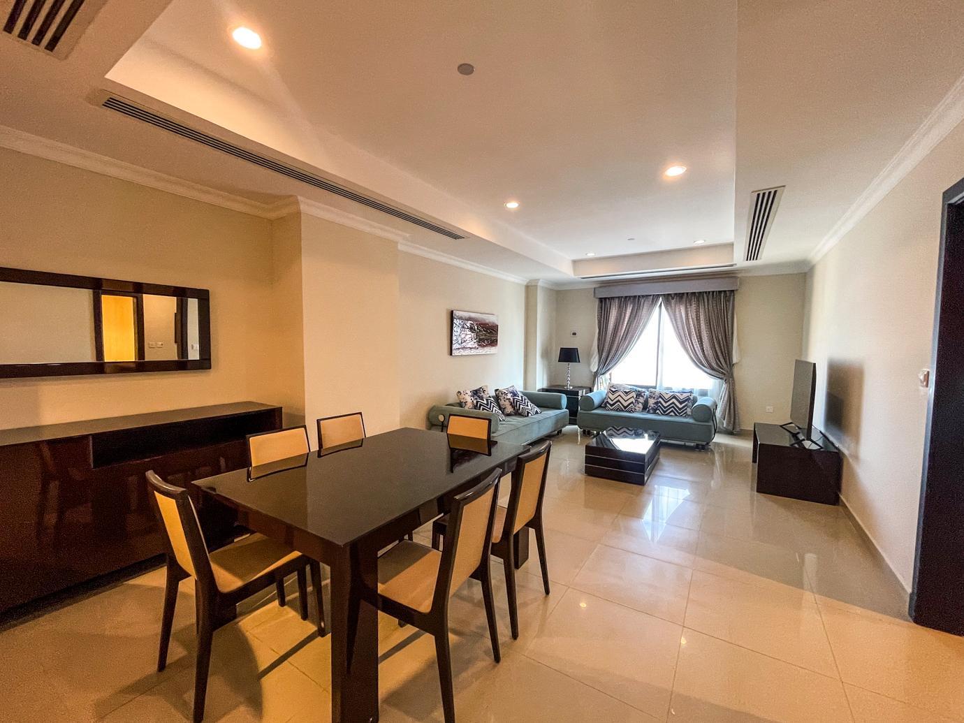Embrace the serene lifestyle that comes with a spacious bedroom, a well-appointed living room, and a modern kitchen. The floor-to-ceiling windows ensure that your home is always bathed in natural light. The rent is inclusive of Qatar Cool charges, making this an unbeatable offer for such a prestigious location.