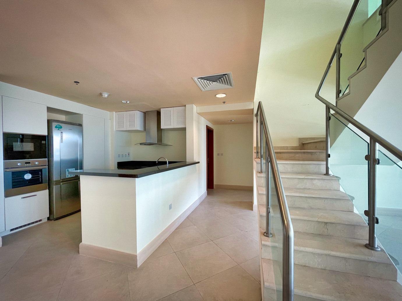 Experience luxury living in this expansive 590 sqm, 4-bedroom penthouse in Viva Bahriya, The Pearl Qatar. This stunning duplex features a spacious and modern open-plan design, complemented by floor-to-ceiling windows that provide an abundance of natural light and breathtaking sea views. The elegant kitchen is equipped with state-of-the-art appliances, seamlessly flowing into the vast living and dining areas, perfect for entertaining guests or enjoying family time.