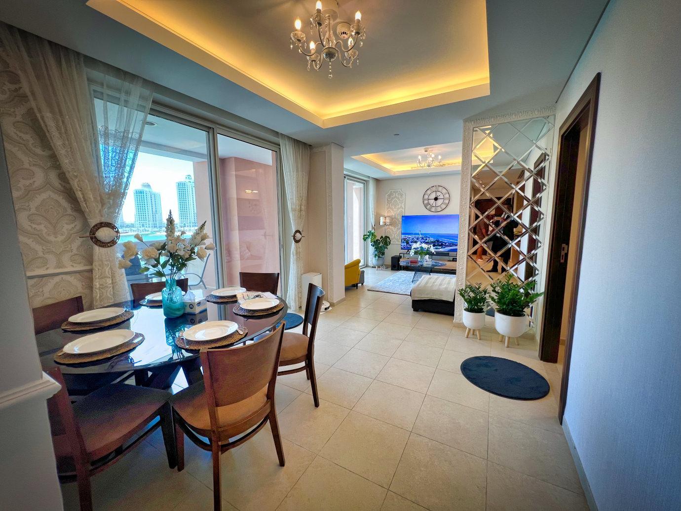 This fully furnished 1-bedroom apartment in Viva Bahriya, The Pearl Qatar, offers a luxurious living experience with a stunning beach view from the spacious balcony. The apartment features a well-appointed living room with chic decor, a cozy dining area, and a modern kitchen equipped with high-quality appliances. The bedroom is designed for comfort, boasting ample storage with sleek built-in wardrobes, and a stylish en-suite bathroom.
