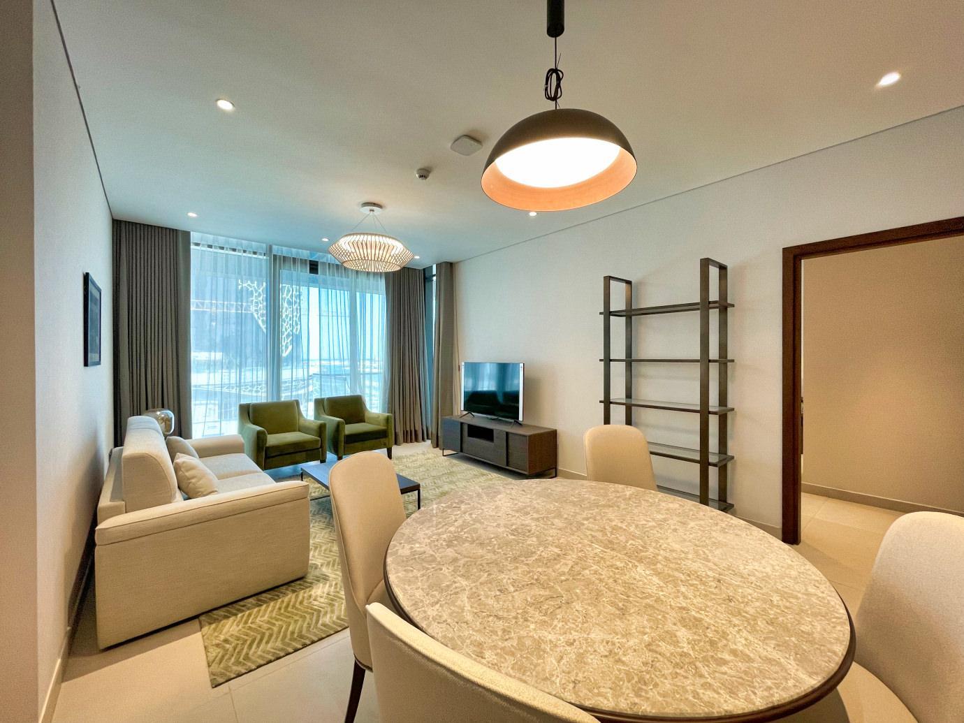 Discover the epitome of modern living in this beautifully furnished 1-bedroom apartment, nestled in the vibrant Lusail City, Qatars new hub for residential and commercial excellence. The apartment features a spacious layout with contemporary furniture, a well-appointed kitchen, and a comfortable living area. The large windows and balcony offer breathtaking partial sea views and a stunning cityscape, creating a serene atmosphere for relaxation.